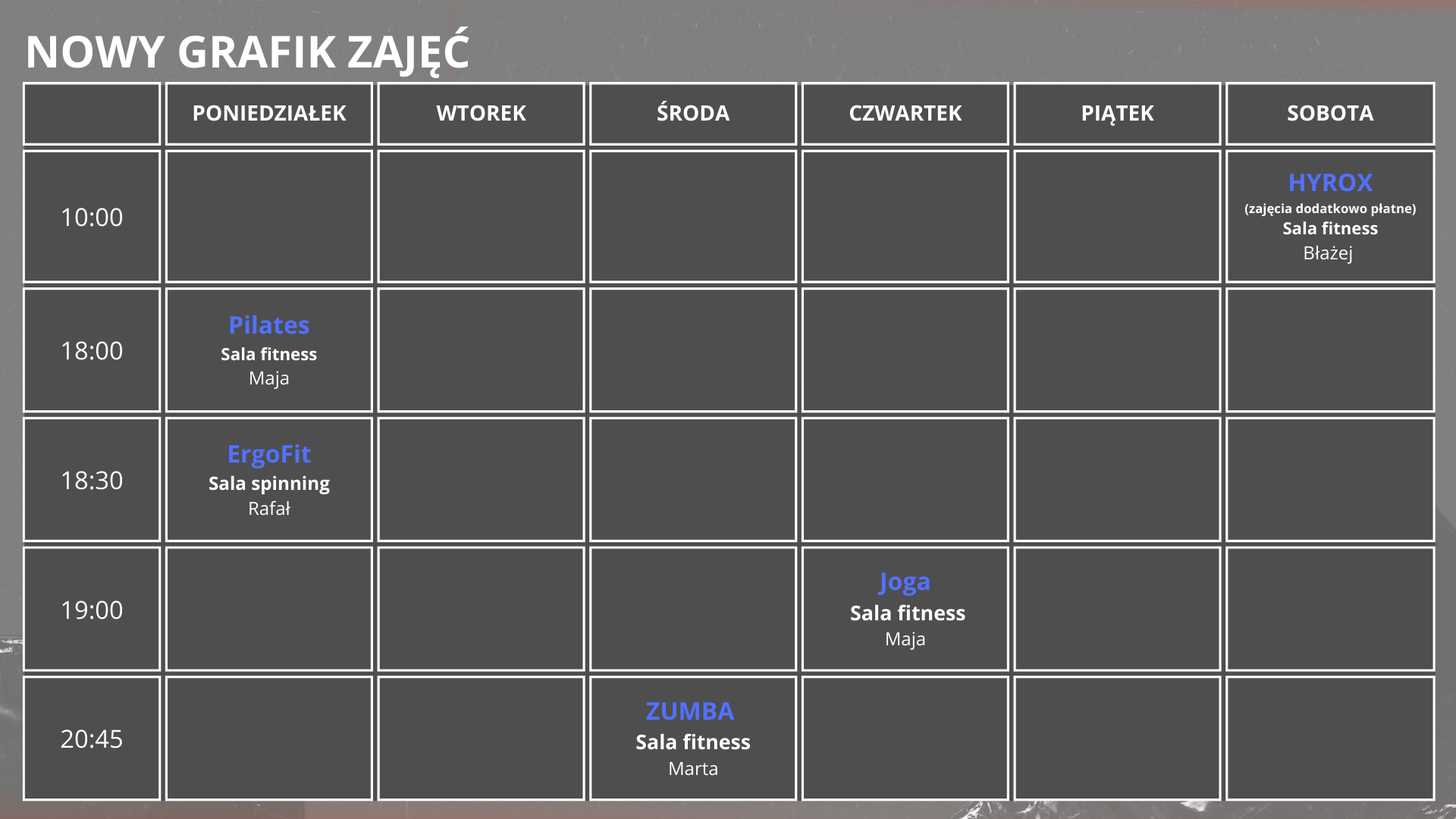 Trening HYROX to intensywny zestaw ćwiczeń łączący bieganie i trening funkcjonalny, który angażuje całe ciało, poprawiając siłę, wytrzymałość i kondycję. Składa się z 8 rund biegu (1 km każda), przeplatanych 8 stacjami, takimi jak ergometr, burpees, przysiady z workiem, pchanie sanek, wykroki i wall balls. HYROX to także wyścigi, które przyciągają osoby szukające rywalizacji – zarówno indywidualnych uczestników, jak i drużyny.